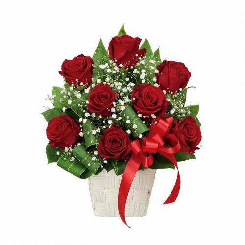 主な花材: 赤バラ、カスミソウ