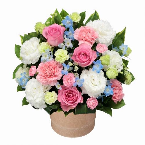 特に女性から人気が高いピンクバラなどの花々を使って、可愛らしく仕上げたアレンジメント。