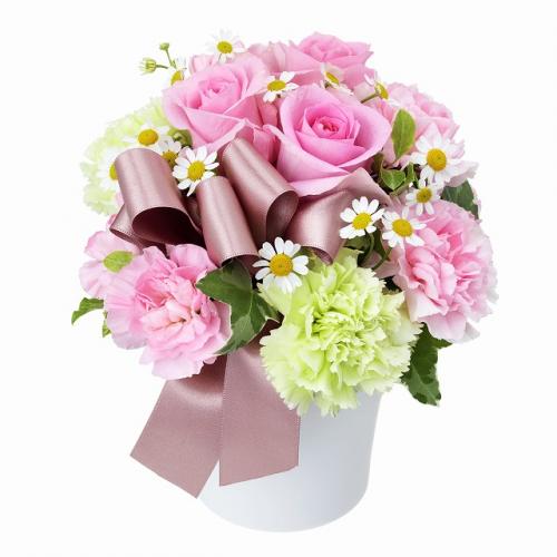 ころんと丸みのあるシルエットが可愛らしいアレンジメント。ピンクバラとグリーンのナチュラルさが心をほっこり癒してくれます。