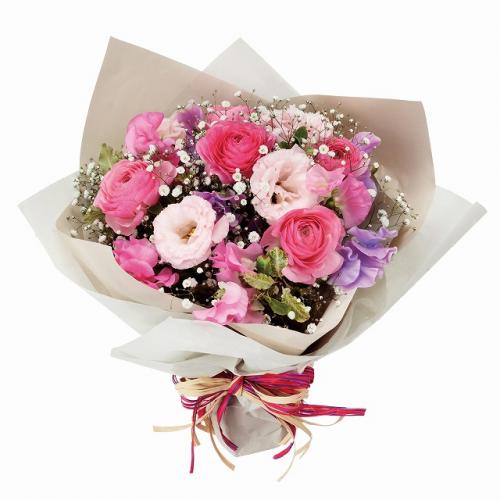 たくさんのお花が美しく咲き始める春。そんな春の季節をふわっとまとめたフラワーギフトです。ピンクを中心にまとめたブーケには、春の日差しのように柔らかく、優しさを感じるスイートピーなどのお花をたっぷりと。特に女性への贈り物としておすすめです。